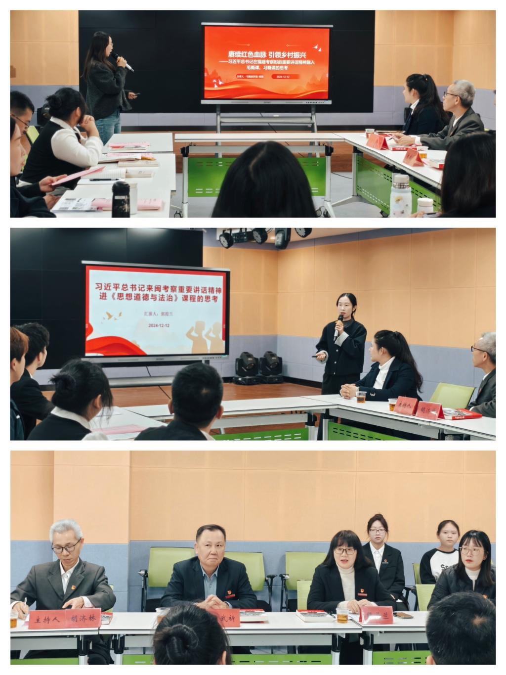 今年10月,習(xí)近平總書(shū)記再次親臨福建考察調(diào)研并發(fā)表重要講話(huà)。如何將習(xí)近平總書(shū)記的深厚情懷和殷殷囑托轉(zhuǎn)化為思政育人的強(qiáng)大動(dòng)力和生動(dòng)實(shí)踐?支部黨員蔣楠、郭霞蘭分別作《賡續(xù)紅色血脈引領(lǐng)鄉(xiāng)村振興——習(xí)近平總書(shū)記在福建考察時(shí)的重要講話(huà)精神融入毛概課的思考》《傳統(tǒng)文化的思政教育價(jià)值——習(xí)近平總書(shū)記來(lái)閩考察重要講話(huà)精神進(jìn)德法課程》分享交流。熊美蘭聚焦立德樹(shù)人根本任務(wù),從“1+1+N”思路,強(qiáng)調(diào)建強(qiáng)黨支部戰(zhàn)斗堡壘,依托馬院黨員教師指導(dǎo)的學(xué)生社團(tuán),提升思政教育引領(lǐng)力。大家備受鼓舞、倍感振奮,紛紛表示將堅(jiān)定不移沿著習(xí)近平總書(shū)記指引的方向奮勇前進(jìn),始終立足“為黨育人”“為國(guó)育才”的初心使命,實(shí)干篤行,以黨建引領(lǐng)提升育人實(shí)效。