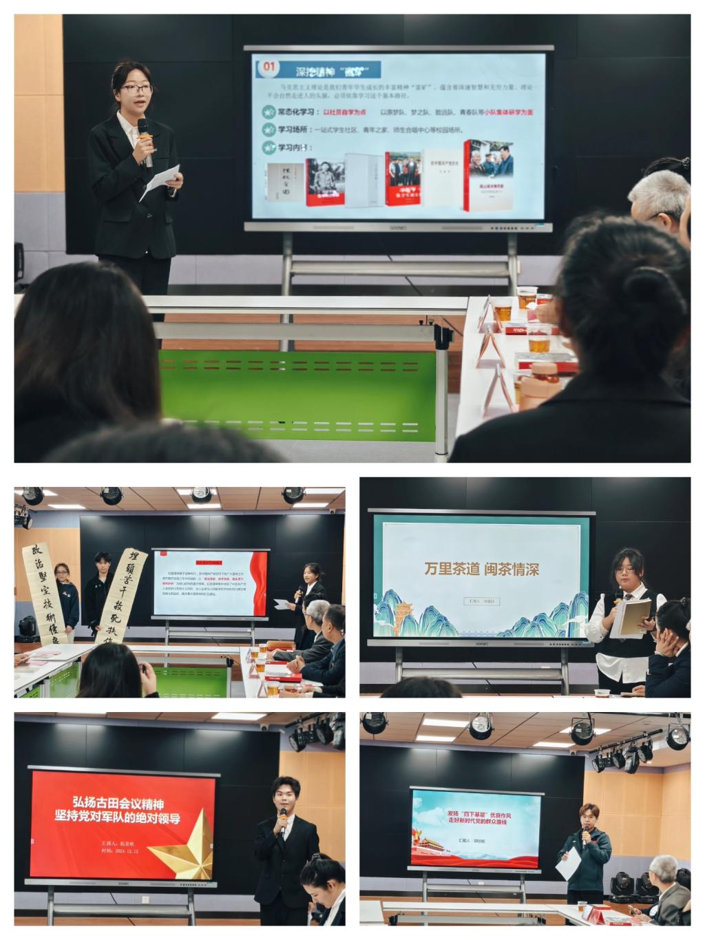 習(xí)近平總書(shū)記在福建工作期間開(kāi)創(chuàng)了豐富的思想財(cái)富、精神財(cái)富和實(shí)踐成果,為福建建設(shè)指明了前進(jìn)方向。讀書(shū)社圍繞這些財(cái)富與成果開(kāi)展一系列社團(tuán)活動(dòng),采擷歸來(lái)。阮昱銘、陳泌達(dá)、張晶鈺、鄭佳銘等讀書(shū)社骨干社員分別作題為《弘揚(yáng)古田會(huì)議精神堅(jiān)持黨對(duì)軍隊(duì)的絕對(duì)領(lǐng)導(dǎo)》《傳承紅醫(yī)精神賡續(xù)紅色血脈》《萬(wàn)里茶道閩茶情深》《發(fā)揚(yáng)“四下基層”優(yōu)良作風(fēng)走好新時(shí)代黨的群眾路線(xiàn)》的學(xué)習(xí)分享。他們從不同視角,用青年話(huà)語(yǔ),以小見(jiàn)大解讀習(xí)近平總書(shū)記在福建的探索與實(shí)踐,暢談從中汲取到的成長(zhǎng)力量。讀書(shū)社社長(zhǎng)江月婧從“深挖精神‘富礦’”“深植理論宣傳”“深耕社會(huì)實(shí)踐”三方面總結(jié)讀書(shū)社作為省級(jí)理論社團(tuán)建設(shè)情況,以“學(xué)習(xí)、傳播、實(shí)踐”三條路徑匯報(bào)讀書(shū)社在校內(nèi)外和“一站式”社區(qū)開(kāi)展的系列活動(dòng)。