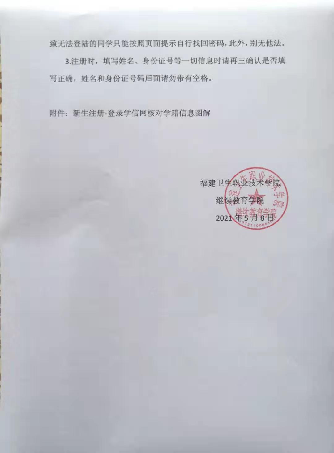 關于福建衛(wèi)生職業(yè)技術學院高等學歷繼續(xù)教育2021級新生登錄學信網(wǎng)核對學籍注冊信息的通知