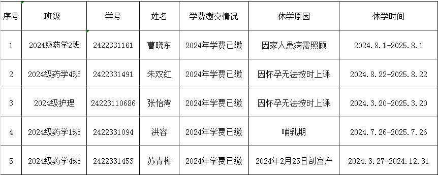 2024年10月休學(xué)名單