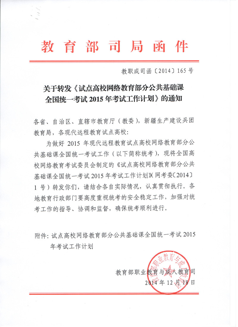 全國統(tǒng)一考試2015年考試工作計(jì)劃