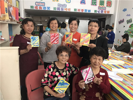 婦女學(xué)員在廈門中山社區(qū)“美麗工坊”制作賀卡