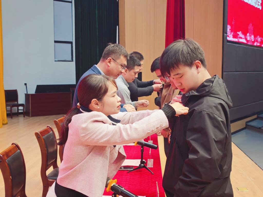 在莊重而熱烈的氛圍中,與會領(lǐng)導(dǎo)為新生代表佩戴中國藥科大學(xué)?;铡_@一神圣的時(shí)刻象征著新生們正式成為中國藥科大學(xué)大家庭中的一員,也標(biāo)志著他們即將開啟一段嶄新的學(xué)習(xí)旅程,肩負(fù)起為我國醫(yī)藥事業(yè)培養(yǎng)優(yōu)秀人才的重任。隨后,在沙雷的帶領(lǐng)下,全體新生莊嚴(yán)宣讀藥學(xué)生誓詞,他們洪亮而堅(jiān)定的聲音表達(dá)了對醫(yī)藥事業(yè)的熱愛和對未來的堅(jiān)定信念,也展現(xiàn)了新時(shí)代藥學(xué)學(xué)子的青春風(fēng)采和責(zé)任擔(dān)當(dāng)。
