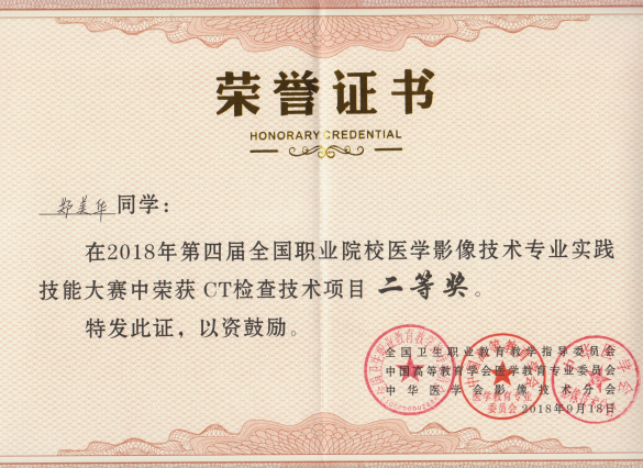 通過校內(nèi)遴選,選出2016級(jí)醫(yī)學(xué)影像技術(shù)專業(yè)陳燕慧、鄭美華、游雅淑和揭絲絲4位同學(xué)組隊(duì)代表學(xué)院參加比賽。經(jīng)過翁繩和、黃蘭珠、曾良成、吳清清等老師的悉心指導(dǎo),同學(xué)們?cè)谖汤K和主任領(lǐng)隊(duì)下,不畏強(qiáng)手,操作規(guī)范,取得團(tuán)體三等獎(jiǎng)。其中,鄭美華同學(xué)獲CT檢查技術(shù)單項(xiàng)二等獎(jiǎng),游雅淑同學(xué)獲醫(yī)學(xué)影像診斷單項(xiàng)三等獎(jiǎng),揭絲絲同學(xué)獲超聲檢查技術(shù)單項(xiàng)三等獎(jiǎng)。