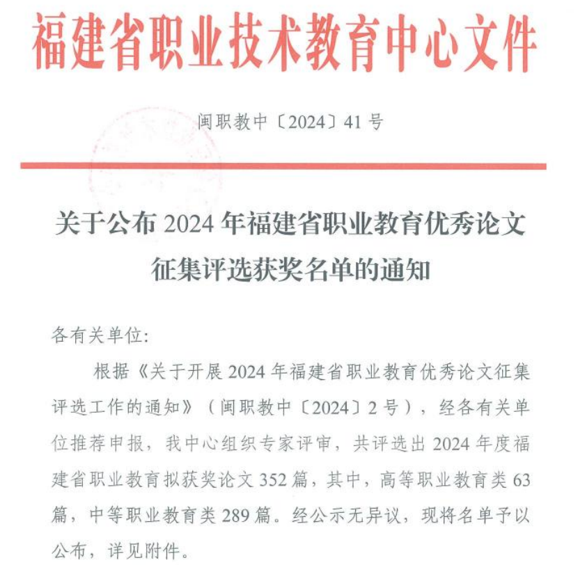 喜報(bào)!我校12篇職業(yè)教育論文在2024年福建省職業(yè)教育優(yōu)秀論文征集評(píng)選活動(dòng)中獲獎(jiǎng)