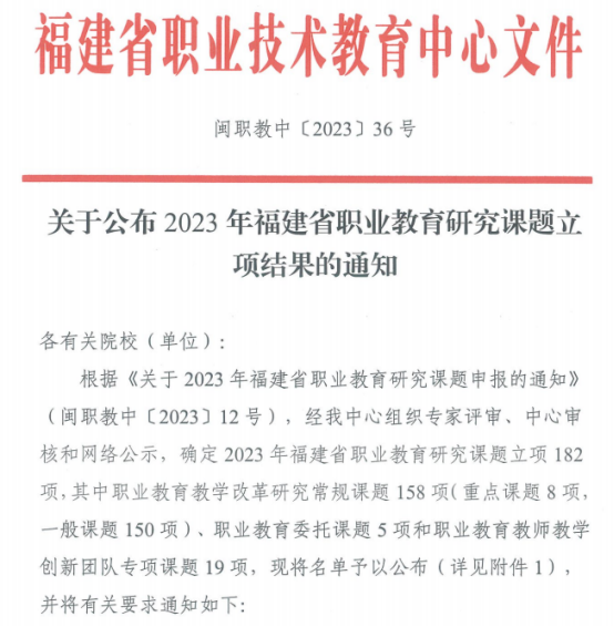 喜報!我校三項課題喜獲2023年福建省職業(yè)教育研究課題立項