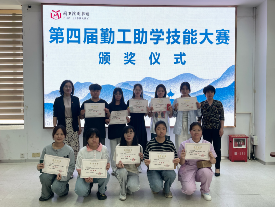 比賽結(jié)束,圖書館宋愛艷館長和吳燕玲副館長為獲獎的學(xué)生館員頒發(fā)了獎狀及圖書館的紀(jì)念品,希望勤工助學(xué)學(xué)生館員再接再厲、保持飽滿的精神面貌,更好為讀者服務(wù)。