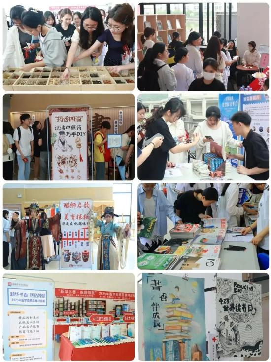 圖書館在一樓大廳同時開啟第 30 個世界讀書日游園會,涵蓋醫(yī)學類精品教材巡展、閱讀空間美化活動成果展、紙質(zhì)圖書讀者薦購、數(shù)字資源推廣、非遺文化趣味問答、中草藥科普與手工掛飾制作等。這場精心籌備的文化盛宴將閱讀與游戲巧妙融合。現(xiàn)場笑語盈盈,師生們在沉浸式體驗中感受閱讀魅力,在互動交流中碰撞思想火花。