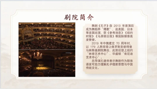 第一期展播內(nèi)容,選取中國歌劇舞劇院創(chuàng)作的古典舞劇《孔子》。自2013年首演以來,在世界各國巡回演出近400場,受到社會各界高度好評和世界各族人民的認(rèn)可。
