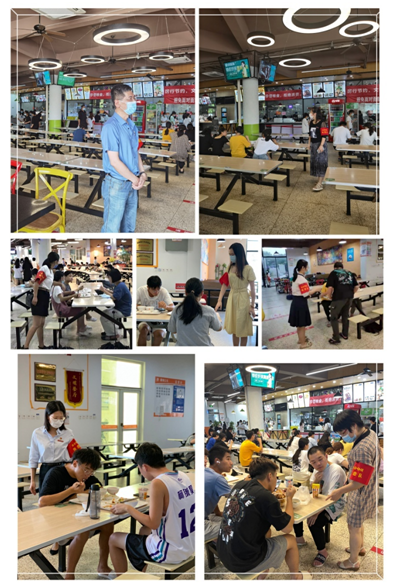 為更好地傳承《1921》、《革命者》彰顯的革命精神和榜樣力量,踐行為人民的服務(wù)精神,在當(dāng)前疫情防控的特殊時期,圖書館黨支部9月組織全體黨員定期開展衛(wèi)生防疫督導(dǎo)執(zhí)勤工作,主要負責(zé)明湖餐廳午晚餐時段執(zhí)勤督導(dǎo)。通過黨員們熱情指引,耐心提醒,積極服務(wù),明湖餐廳師生呈現(xiàn)出用餐和防疫的良好秩序。