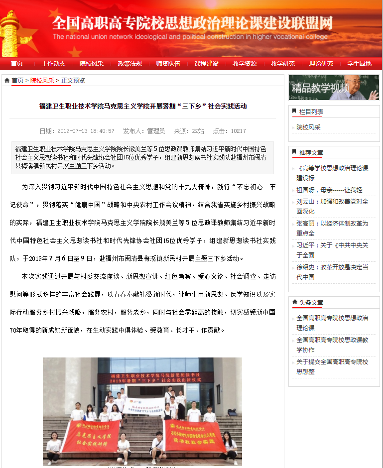 全國(guó)高職高專思政課建設(shè)聯(lián)盟網(wǎng)7月13日院校風(fēng)采 http://www.qggzszk.org/index.php/Home/Article/shows/id/1963