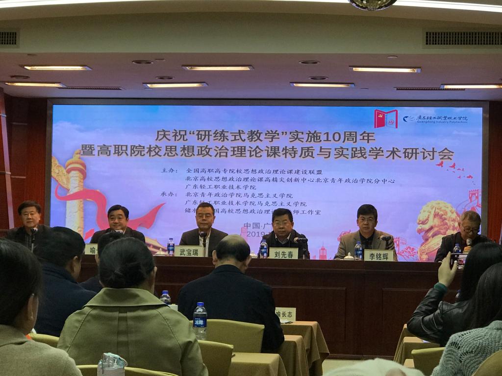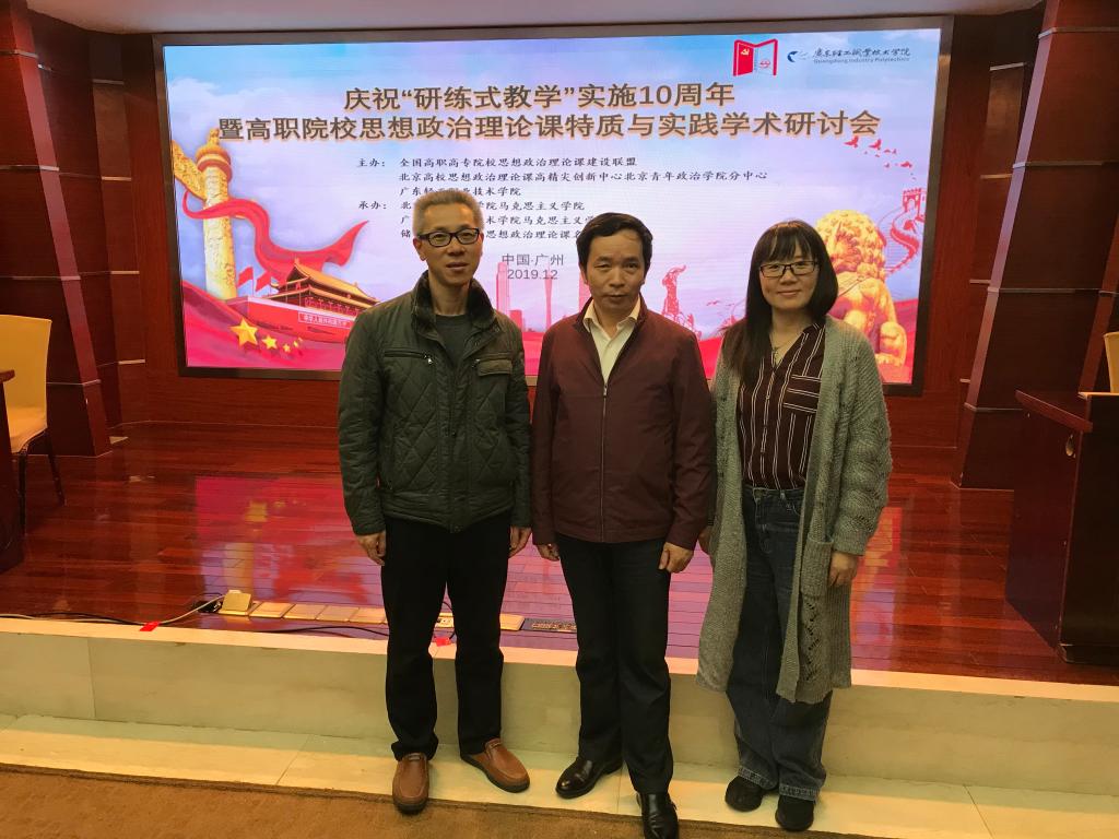 2019年12月20-22日,由全國高職高專院校思想政治理論課建設(shè)聯(lián)盟、北京高校思想政治理論課高精尖創(chuàng)新中心北京青年政治學(xué)院分中心聯(lián)合主辦,廣東輕工職業(yè)技術(shù)學(xué)院馬克思主義學(xué)院、儲(chǔ)水江全國高校思想政治理論課名師工作室承辦的“高職院校思想政治理論課特質(zhì)與實(shí)踐”暨“研練式教學(xué)”十周年學(xué)術(shù)研討會(huì)在廣州舉行。我校馬克思主義學(xué)院院長熊美蘭、概論教研室主任胡濟(jì)林參加此次研討會(huì)。