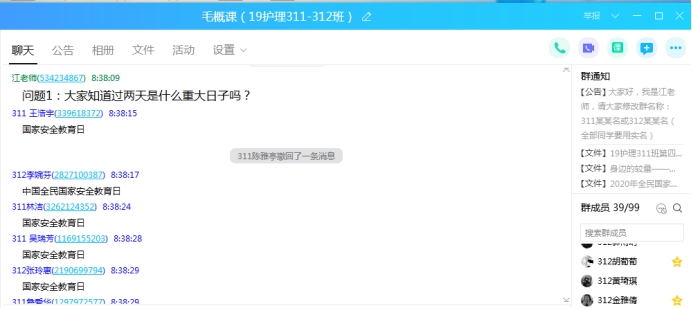 馬克思主義學(xué)院有的年輕教師還兼任了輔導(dǎo)員工作,他們利用班會時(shí)間,通過開展全民國家安全教育主題班會,做好宣傳工作。