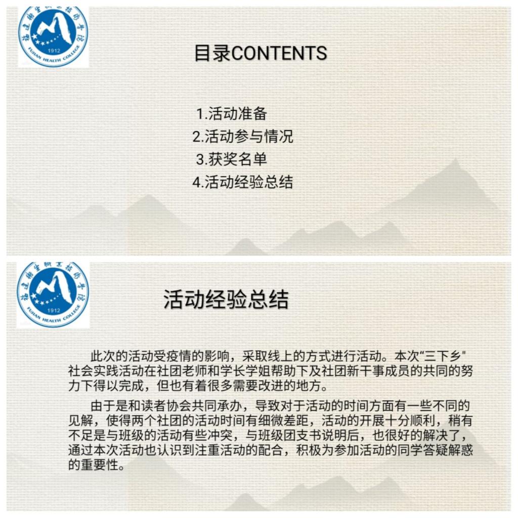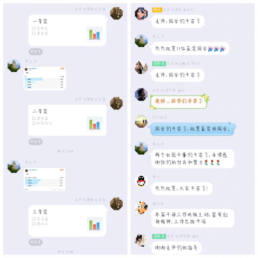 接著進入評審集體評議階段,先是廖佳盈、林學(xué)穎、蔡雅嵐、魏奕雪等同學(xué)對作品發(fā)表看法,再由胡濟林、江洪、楊盈、魏立娜和熊美蘭等5位指導(dǎo)老師對作品分別進行點評。所有參賽作品值得肯定的優(yōu)點是,作品富有新意,有對紅色基地的講解,也有利用醫(yī)學(xué)專業(yè)優(yōu)勢參與支教和新冠肺炎疫情防控活動;不足之處是作品的完整性欠佳,在開頭應(yīng)介紹活動所處位置及歷史背景,需要多方位地展示社會實踐過程,而不以單一的圖片進行講解。最后進入評審結(jié)果階段,在讀書社總負責指導(dǎo)老師熊美蘭的主持下,在場的所有老師和社團干事通過QQ在線投票,決出一等獎1項、二等獎2項、三等獎3項和優(yōu)秀獎5項。(具體名單附后)