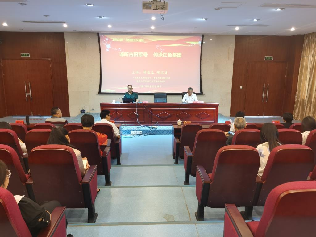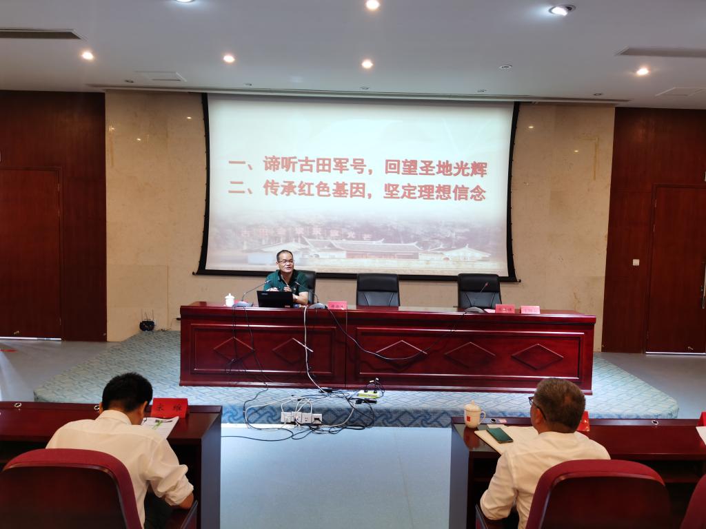 為深入學(xué)習(xí)習(xí)近平新時(shí)代中國(guó)特色社會(huì)主義思想,持續(xù)開展習(xí)近平總書記關(guān)于黨史、新中國(guó)史、改革開放史、社會(huì)主義發(fā)展史學(xué)習(xí),進(jìn)一步弘揚(yáng)古田會(huì)議精神,激發(fā)學(xué)院師生銘記歷史、不忘初心的愛(ài)國(guó)熱情,鞏固升華師生理想信念。2020年10月14日下午,現(xiàn)福建省文旅廳黨組成員、省文物局局長(zhǎng)傅柒生應(yīng)邀做題為“諦聽(tīng)古田軍號(hào)傳承紅色基因”專題講座。校領(lǐng)導(dǎo)、黨建思政工作部門負(fù)責(zé)人、各系黨總支書記、全體思想政治理論課教師以及學(xué)生代表一起重溫閩西古田這片革命熱土上的紅色故事。講座由陳貞健副院長(zhǎng)主持。