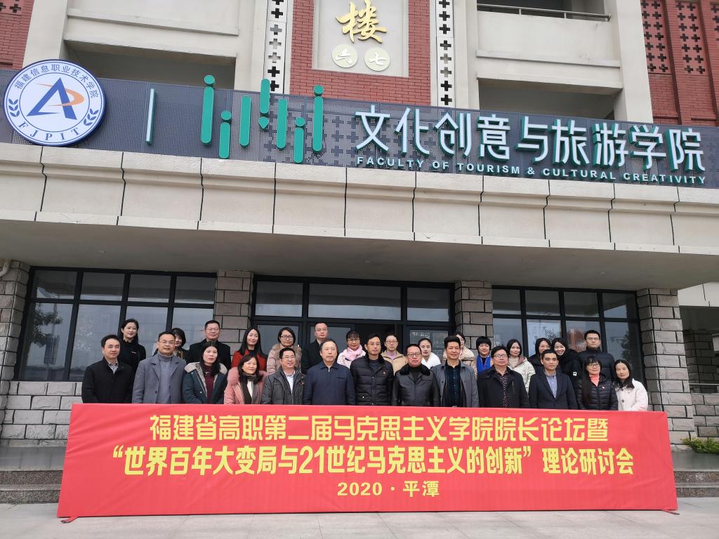 當(dāng)今世界正經(jīng)歷百年未有之大變局。習(xí)近平新時代中國特色社會主義思想作為21世紀馬克思主義的創(chuàng)新成果,是引領(lǐng)中國與影響世界雙向推進的科學(xué)理論。為深入理解和正確把握世界百年大變局進程中產(chǎn)生的大量深刻復(fù)雜的現(xiàn)實問題和大量亟待回答的理論課題,對 21 世紀馬克思主義的創(chuàng)新有一個全方位的認識,使高職院校思政課教學(xué)能在不斷變化的時代中把握好方向、贏得主動,在進入新發(fā)展階段、貫徹新發(fā)展理念、構(gòu)建新發(fā)展格局中塑造優(yōu)勢。福建省首屆高職馬克思主義學(xué)院院長論壇暨“世界百年大變局與 21 世紀馬克思主義的創(chuàng)新”理論研討會于12月21日-22 日在福建信息職業(yè)技術(shù)學(xué)院(平潭校區(qū))召開,我校馬克思主義學(xué)院院長熊美蘭與副院長來朋珍參加。
