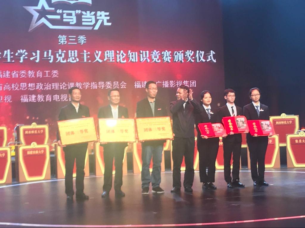 馬克思主義是我國大學(xué)最鮮亮的底色。福建省高校大學(xué)生學(xué)習(xí)馬克思主義理論“一‘馬'當(dāng)先”知識競賽是我省大學(xué)生學(xué)習(xí)馬克思主義理論的品牌活動(dòng),是創(chuàng)新大學(xué)生學(xué)習(xí)習(xí)近平新時(shí)代中國特色社會(huì)主義思想的方式。自該賽事開展以來,我校領(lǐng)導(dǎo)高度重視,把學(xué)習(xí)馬克思主義理論“一‘馬’當(dāng)先”知識競賽作為培養(yǎng)我校學(xué)生思想政治水平的一面鏡子。我校學(xué)生積極參與其中,數(shù)萬學(xué)子參與了往屆的校賽初選,通過全方位選拔,認(rèn)真?zhèn)滟?,?018年省第三季“一‘馬'當(dāng)先”知識競賽中榮獲團(tuán)體三等獎(jiǎng),2017-2020年共有7位學(xué)生榮獲優(yōu)秀獎(jiǎng)。