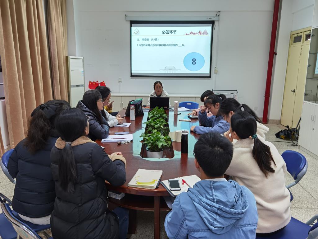 集體動(dòng)員,有序分工馬院將“一馬當(dāng)先”知識競賽列為全年重點(diǎn)工作項(xiàng)目,面向全體教師集體總動(dòng)員,共同投入備賽工作,同心同德、有序分工。以教研室為依托,專業(yè)教師專題指導(dǎo),指導(dǎo)教師認(rèn)真研究參賽規(guī)則開展集訓(xùn)。教研室根據(jù)各自課程分別圍繞《毛澤東思想和中國特色社會(huì)主義理論體系概論》、《思想道德修養(yǎng)與法律基礎(chǔ)》、《擺脫貧困》、《習(xí)近平在寧德》、《習(xí)近平在廈門》、《習(xí)近平在福州》、《習(xí)近平在福建》、《福建紅色文化讀本》、“四史”以及形勢與政策等比賽相關(guān)內(nèi)容設(shè)置和更新題庫。專業(yè)教師根據(jù)各自負(fù)責(zé)課程和專題開展知識點(diǎn)的梳理與講解。指導(dǎo)教師則根據(jù)往年的比賽、知識點(diǎn)的梳理等有針對性開展比賽現(xiàn)場指導(dǎo)與競賽刷題,根據(jù)參賽要求針對高職院校學(xué)生學(xué)習(xí)特點(diǎn)及能力水平開展相關(guān)課程的補(bǔ)充講解與文件解讀等。