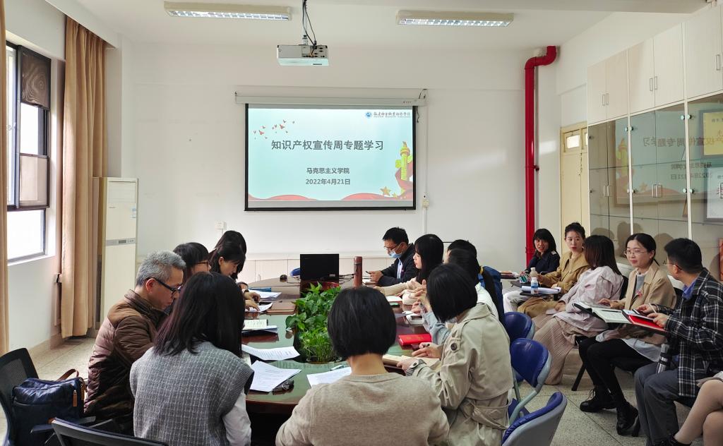 為深入貫徹落實(shí)習(xí)近平總書(shū)記關(guān)于知識(shí)產(chǎn)權(quán)工作的重要指示論述,增強(qiáng)全社會(huì)尊重和保護(hù)知識(shí)產(chǎn)權(quán)的意識(shí),積極推進(jìn)知識(shí)產(chǎn)權(quán)強(qiáng)國(guó)建設(shè),根據(jù)全國(guó)知識(shí)產(chǎn)權(quán)宣傳周活動(dòng)組委會(huì)辦公室要求和學(xué)校相關(guān)通知要求,2022年4月21日上午,馬克思主義學(xué)院于107會(huì)議室開(kāi)展知識(shí)產(chǎn)權(quán)宣傳周專(zhuān)題學(xué)習(xí)活動(dòng)。