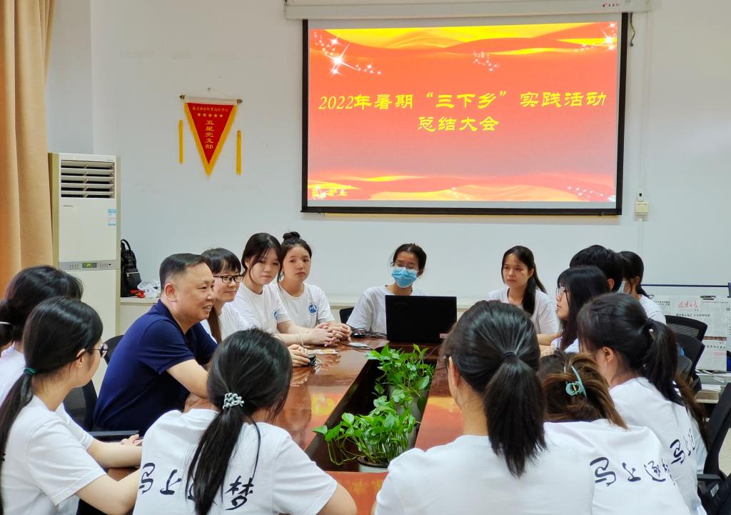 同時,校黨委書記曾武祈到行政樓107看望馬克思主義學(xué)院2022年暑期“三下鄉(xiāng)”社會實踐隊,與大家圍坐在一起親切交談。曾武祈認(rèn)真聽取了實踐隊指導(dǎo)老師熊美蘭、隊長葉鎵萍等人的工作匯報,對實踐隊在新坡村開展的黨史宣講、健康宣教、愛心義診等實踐活動給予高度評價。他鼓勵同學(xué)們在實踐中經(jīng)風(fēng)雨、做貢獻(xiàn)、長才干、受教育,叮囑同學(xué)們要珍惜機(jī)遇、抓住機(jī)會、謙虛好學(xué),囑托同學(xué)們要做到知行合一,學(xué)有所獲、學(xué)有所得、學(xué)有所成。