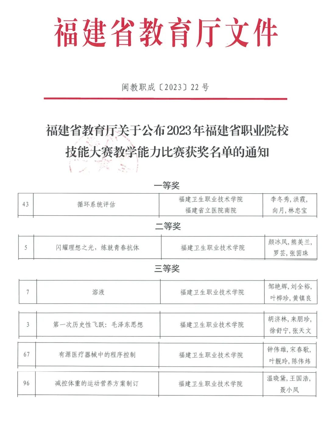 【福建衛(wèi)職院】喜報(bào)|我校在2023年福建省職業(yè)院校教學(xué)技能大賽教學(xué)能力比賽中喜獲佳績(jī)