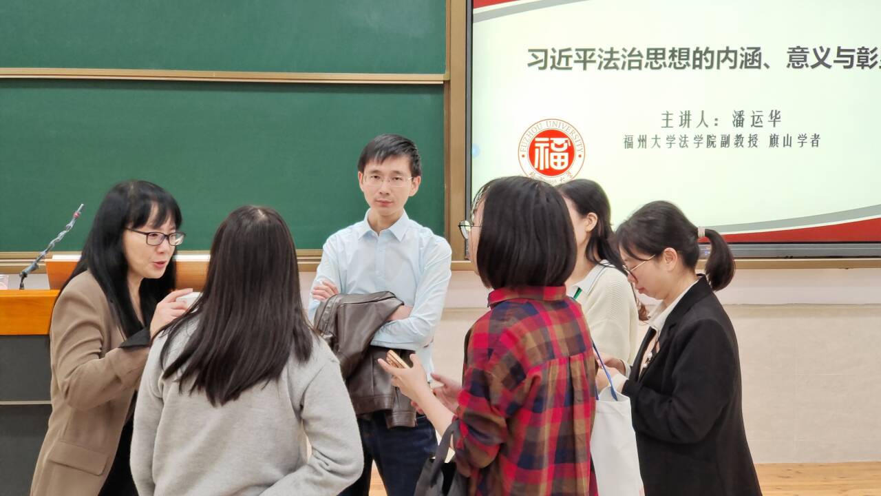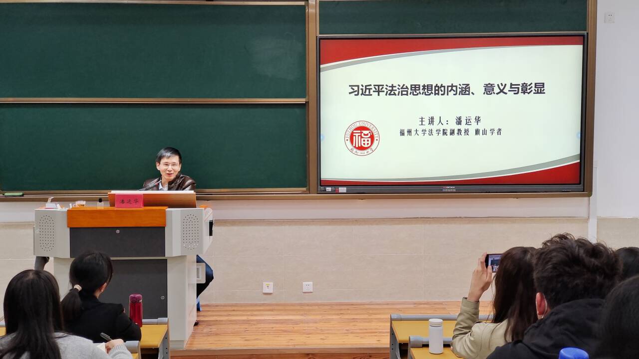 習(xí)近平法治思想是馬克思主義法治理論中國化的最新成果,是中國特色社會(huì)主義法治理論的重大創(chuàng)新發(fā)展,對(duì)于全面加快我國社會(huì)主義法治建設(shè)具有重大現(xiàn)實(shí)意義和深遠(yuǎn)歷史意義。在第十個(gè)國家憲法日即將到來之際,為引導(dǎo)廣大師生大力弘揚(yáng)憲法精神,建設(shè)社會(huì)主義法治文化,深刻認(rèn)識(shí)我國社會(huì)主義法治的本質(zhì)特征,深刻認(rèn)同黨的領(lǐng)導(dǎo)是全面依法治國的根本保證,2023年11月23日,福建省民商法學(xué)研究會(huì)理事,福州大學(xué)“旗山學(xué)者”、法學(xué)院副教授潘運(yùn)華受邀在崇健樓202開展專題講座、教學(xué)研討和法律咨詢“三組合”活動(dòng)。我校思政課專兼職教師、醫(yī)學(xué)技術(shù)與工程學(xué)院部分學(xué)生參加講座,講座由馬克思主義學(xué)院院長熊美蘭、副院長來朋珍共同主持。