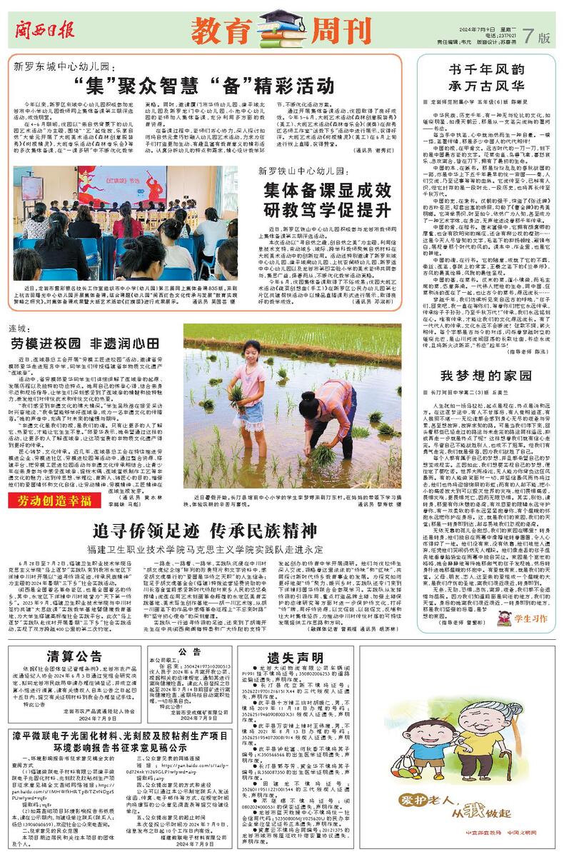 (【閩西日?qǐng)?bào)】 2024年7月9日 鏈接:http://www.mxrb.cn/dzb/m_mxrb/2024-07/09/node_07.html