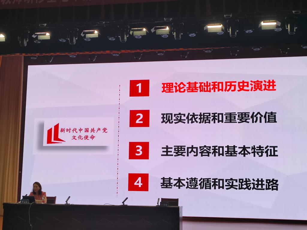 “文化認(rèn)同是最深層次的認(rèn)同,是民族團(tuán)結(jié)之根、民族和睦之魂?!痹谛陆蟮厣希腥A文化數(shù)千年延續(xù),化在悠悠古絲綢之路上精魂永存的烽燧戍堡之中,留在飽經(jīng)風(fēng)霜卻歷久彌新的古城之間,滲入生活在新疆土地上各民族的思想言行之中。開(kāi)班第一課上,新疆師范大學(xué)馬克思主義學(xué)院副院長(zhǎng)羅志佳教授以“新時(shí)代中國(guó)共產(chǎn)黨文化使命”為題,通過(guò)講述新疆紅色故事、朗誦新疆革命詩(shī)歌、演唱新疆經(jīng)典民歌等多種方式,向參訓(xùn)教師生動(dòng)闡釋了新時(shí)代中國(guó)共產(chǎn)黨文化使命的“理論基礎(chǔ)和歷史演進(jìn)”“現(xiàn)實(shí)依據(jù)和重要價(jià)值”“主要內(nèi)容和基本特征”“基本遵循和實(shí)踐路徑”四個(gè)方面內(nèi)容。羅志佳教授將新疆各民族風(fēng)土人情和文化底蘊(yùn)有機(jī)融入中華文化的發(fā)展脈絡(luò)之中,于“文化潤(rùn)疆”中,讓參訓(xùn)教師深刻感悟到各民族廣泛交往交流交融、團(tuán)結(jié)奮進(jìn)的新疆實(shí)踐,積累了宣傳中華民族共同體意識(shí)的生動(dòng)素材。