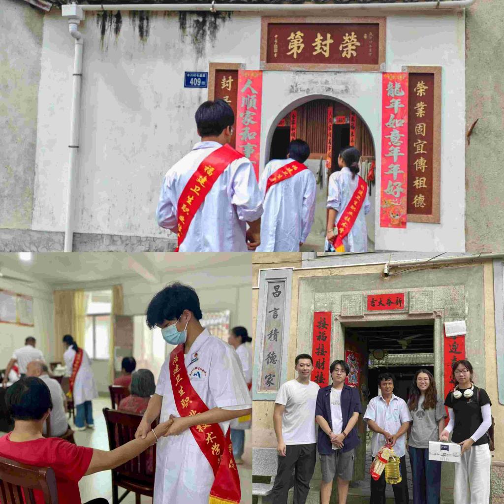 華僑愛國(guó)愛鄉(xiāng)、熱心公益、無私奉獻(xiàn)的精神在以胡文虎為代表的華僑龍商身上體現(xiàn)得淋漓盡致,實(shí)踐隊(duì)員們?cè)谶@堂行走的“大思政課”中深受鼓舞。20名閩衛(wèi)青年化身“行走的小藥箱”,用自身所學(xué)專業(yè)知識(shí)守護(hù)村民健康,教給村民推拿的基本手法和居家護(hù)理等醫(yī)學(xué)知識(shí),給村民帶去紅花油、板藍(lán)根等常用藥,囑咐村民科學(xué)使用藥品,讓村民真正感受到了“面對(duì)面”的醫(yī)療暖心服務(wù)。同學(xué)們還走進(jìn)中川低保戶、特困村民家中,化身“暖心使者”送去油、米等慰問品。