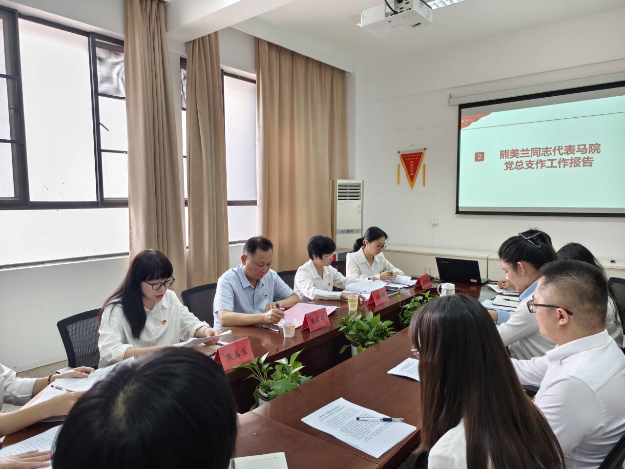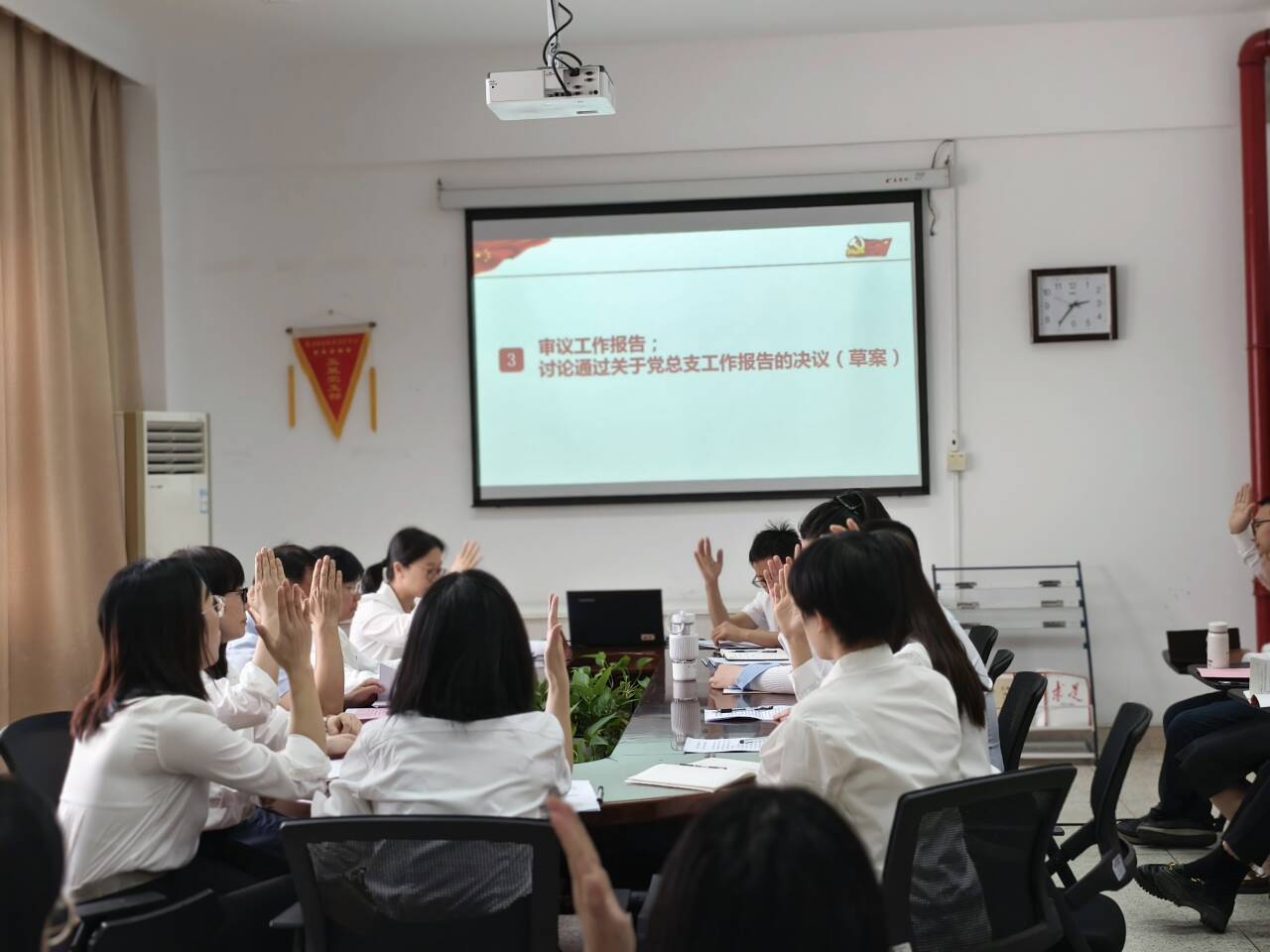 14時(shí)30分,大會(huì)在莊嚴(yán)的國(guó)歌聲中拉開序幕。隨后,熊美蘭同志代表馬院黨總支做工作報(bào)告,總結(jié)回顧過去三年在學(xué)校黨委的正確領(lǐng)導(dǎo)下,馬院黨總支在思想建設(shè)、組織建設(shè)、思政育人、黨風(fēng)廉政建設(shè)等方面取得的良好成效與寶貴經(jīng)驗(yàn),指出馬院黨總支在黨建與業(yè)務(wù)深度融合等方面的不足與問題,進(jìn)一步提出改進(jìn)措施,作出全面部署,為推動(dòng)馬院黨建工作高質(zhì)量發(fā)展奮力譜寫新篇章。熊美蘭所作報(bào)告全面具體,實(shí)事求是,為馬院黨總支今后工作提供了行動(dòng)指南,全體參會(huì)黨員給予積極肯定,一致通過工作報(bào)告。