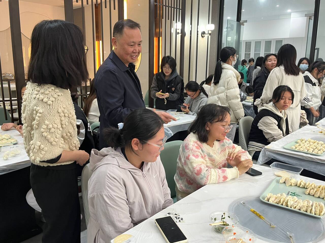 曾武祈走進學生中間,從《說文解字》中具有重要文化含義的意向性比喻——“法平如水”出發(fā),娓娓道來,幫助在場師生深化對法的基本理解。在與同學們親切交談的過程中,他指出,餃子作為中華民族飲食文化的瑰寶,蘊含著深厚的歷史底蘊與民族情感,是文化傳承的生動載體。此次活動,師生共話家常,同包餃餌,不僅增進了情誼,更在無形中延續(xù)了中華優(yōu)秀傳統(tǒng)文化血脈。近年來,我校深入探索“一站式”學生社區(qū)建設(shè)新方法新路徑,不斷提升學生社區(qū)精準育人效能。青年學子應(yīng)以此次活動為契機,學深悟透“兩個結(jié)合”,更好肩負新時代的憲法宣傳使命,實現(xiàn)中華優(yōu)秀傳統(tǒng)文化與法治理念深度融合和實踐。