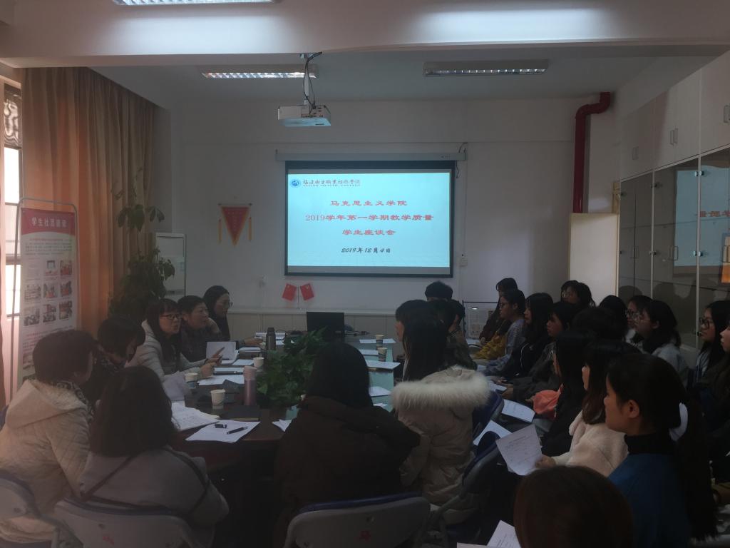 為持續(xù)貫徹落實(shí)習(xí)近平總書記在學(xué)校思想政治理論課教師座談會(huì)上的重要講話精神,持續(xù)改進(jìn)思想政治理論課教學(xué)實(shí)效性,立好課堂主渠道,馬克思主義學(xué)院(以下簡(jiǎn)稱“馬院”)于2019年12月4日在107會(huì)議室召開2019學(xué)年第一學(xué)期教學(xué)質(zhì)量學(xué)生座談會(huì),校督導(dǎo)室主任、馬院各教研室主任、馬院辦公室主任及各系部30名學(xué)生代表參會(huì),會(huì)議由馬院院長(zhǎng)熊美蘭主持。