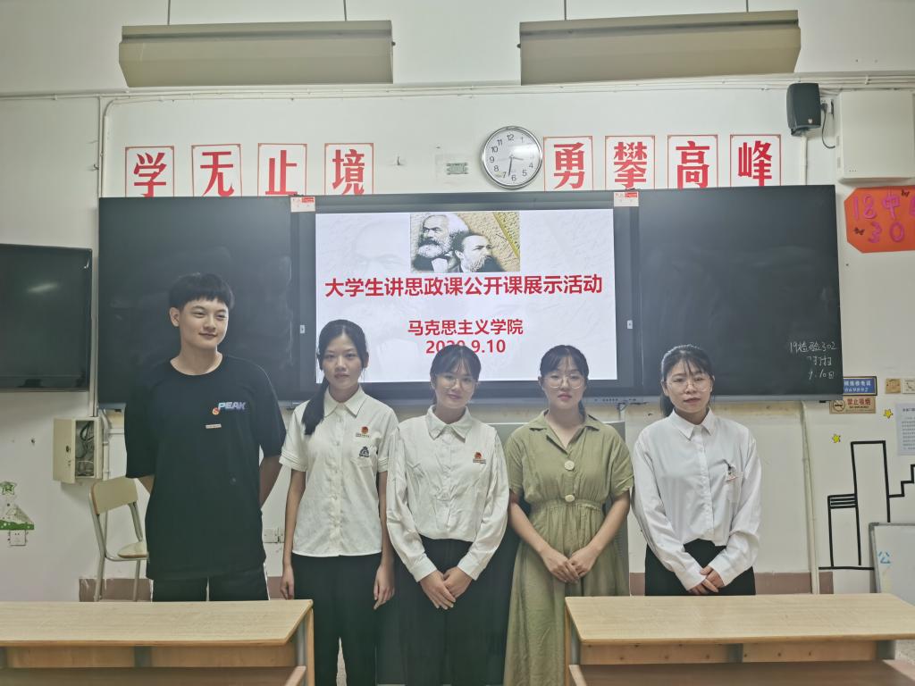 為深入貫徹落實(shí)習(xí)近平總書記關(guān)于教育的重要論述,特別是在學(xué)校思想政治理論課教師座談會(huì)上的重要講話精神,堅(jiān)持不懈用習(xí)近平新時(shí)代中國特色社會(huì)主義思想鑄魂育人,2020年9月10日下午,馬克思主義學(xué)院于教學(xué)樓102舉辦“綻放抗疫青春?決勝全面小康”——大學(xué)生講思政課公開課展示活動(dòng)?;顒?dòng)中,由5位通過初評(píng)的選手進(jìn)行現(xiàn)場(chǎng)教學(xué)展示,馬院院長(zhǎng)熊美蘭、馬院辦公室主任楊盈及各教研室主任參與聽課、評(píng)課。