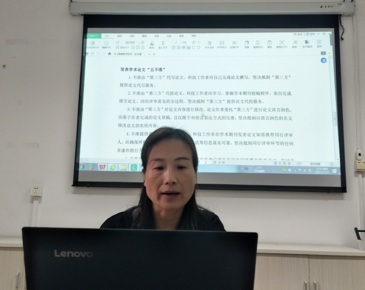 為進(jìn)一步推進(jìn)科研誠(chéng)信與作風(fēng)學(xué)風(fēng)建設(shè)專項(xiàng)教育整治活動(dòng),2021年11月4日上午,馬克思主義學(xué)院在行政樓107會(huì)議室開展“科研誠(chéng)信與學(xué)術(shù)道德”專題學(xué)習(xí)活動(dòng)。,本次活動(dòng)由馬克思主義學(xué)院副院長(zhǎng)來朋珍主講,馬克思主義學(xué)院全體教師出席。