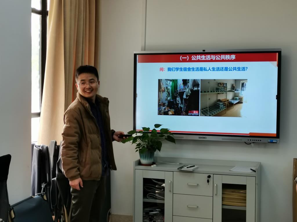 課中,王康圍繞著“社會公德、職業(yè)道德、家庭美德、個人品德”四個部分展開教學,通過理論講解,引入案例,播放視頻等手段,突出重點,突破難點。