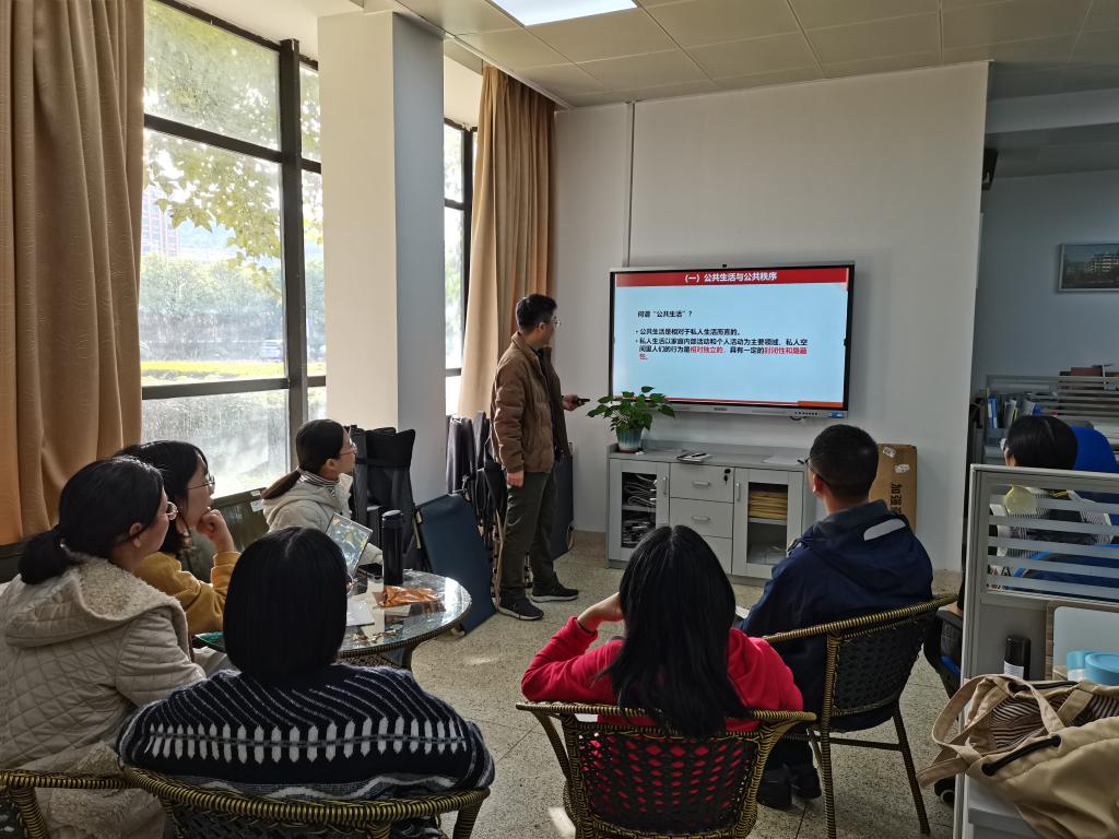 為進一步吃透2021版《思想道德與法治》新教材,加快課程建設,提升教學質(zhì)量,使新教師盡快適應教學,基礎教研室于2021年11月25日上午通過對新進教師王康開展了集中聽課活動,授課內(nèi)容是遵守道德規(guī)范 錘煉道德品格。參與聽課的教師有基礎教研室主任顏冰鳳,馬克思主義學院教師陳洪月、江洪、龍慧、張茵珠、羅蕓等。