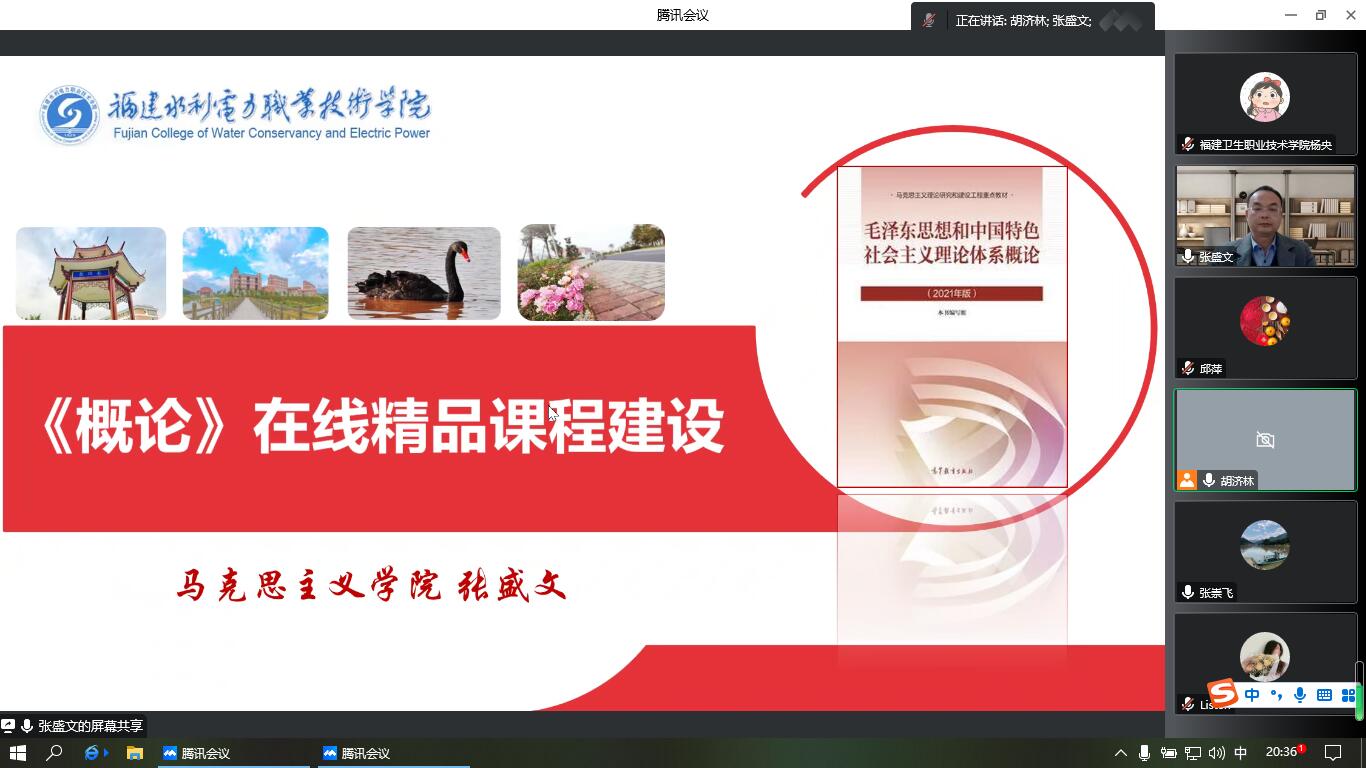 為推進我校《毛澤東思想和中國特色社會主義理論體系概論》精品在線開放課程建設,2022年12月18日傍晚,馬克思主義學院習近平新時代中國特色社會主義思想概論教研室通過騰訊會議,組織開展精品在線開放課程建設研討會。本次研討會特邀福建水利電力職業(yè)技術學院馬克思主義學院院長張盛文教授為大家做經驗分享與課程建設指導。校教師教學培訓師、概論教研室主任胡濟林主持會議,課程組全體教師參加會議。