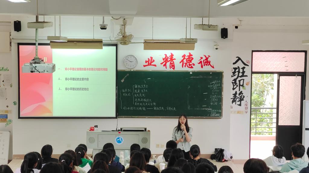 本次公開課的授課內(nèi)容是《毛澤東思想和中國特色社會主義理論體系概論》課程中的“鄧小平理論首要的基本的理論問題和精髓”。蔣楠老師從“福建面對‘大包干’為何畏首畏尾?”的視頻切入課程主題,以“探索福建由窮到富的秘密”為主線,利用本地案例吸引學(xué)生注意力,引發(fā)學(xué)生思考“什么是社會主義?怎樣建設(shè)社會主義?”這一重要問題,探究出社會主義的本質(zhì)是“解放生產(chǎn)力,發(fā)展生產(chǎn)力,消滅剝削,消除兩極分化,最終達到共同富裕。”聽課教師一致認為蔣楠老師聲音洪亮,備課充分、內(nèi)容熟悉,講授形象生動、邏輯性強。此外,建議采取有效手段加強課堂互動,調(diào)動學(xué)生課堂參與度,授課過程中語速偏快,需注意調(diào)整。