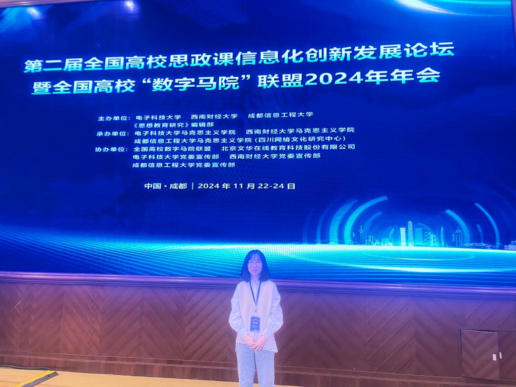 11月23日至24日,第二屆全國(guó)高校思政課信息化創(chuàng)新發(fā)展論壇暨全國(guó)高?!皵?shù)字馬院”聯(lián)盟2024年年會(huì)舉行。該年會(huì)由電子科技大學(xué)、西南財(cái)經(jīng)大學(xué)、成都信息工程大學(xué)、《思想教育研究》編輯部聯(lián)合舉辦。來(lái)自全國(guó)200余所高校,共計(jì)400余名思政課專家、學(xué)者、教育科技工作者參會(huì),圍繞“高校思政課信息化創(chuàng)新發(fā)展”主題,聚焦數(shù)智時(shí)代演化與變革、共議學(xué)科融合與發(fā)展。我校馬克思主義學(xué)院思想道德與法治教研室主任顏冰鳳參加了會(huì)議。