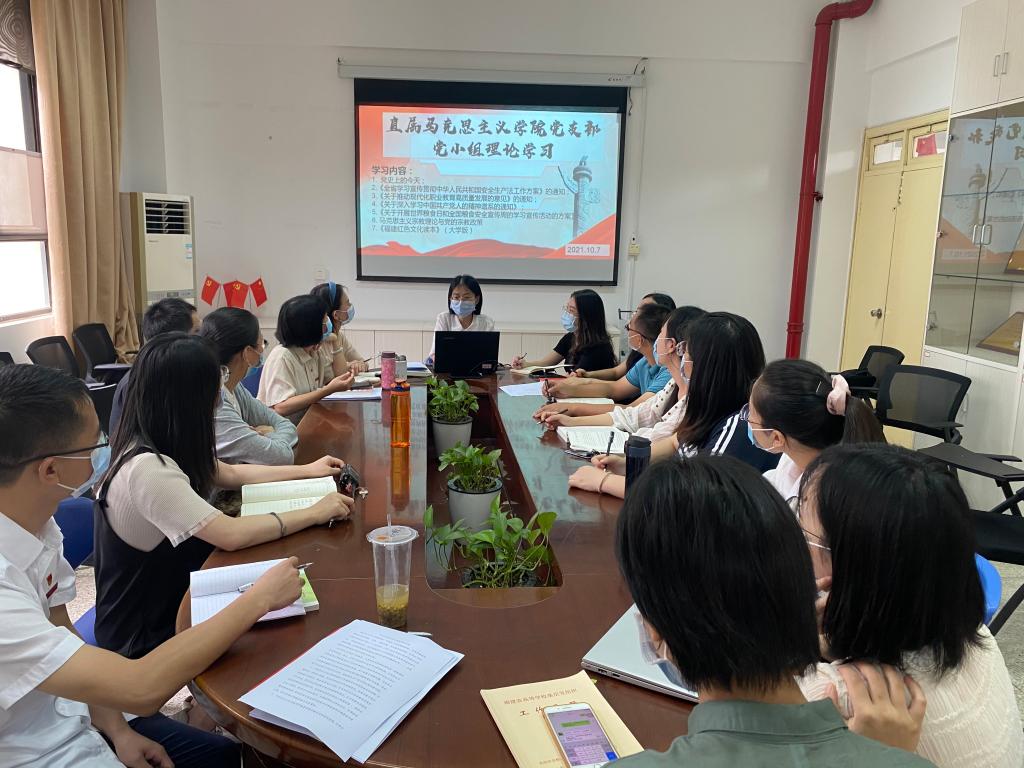 2021年10月7日,直屬馬克思主義學(xué)院黨支部第二黨小組在會議室107進(jìn)行理論學(xué)習(xí)。學(xué)習(xí)活動由黨支部委員羅蕓同志主持。