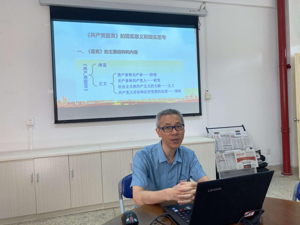 活動中,胡濟林首先從《宣言》的主要結構和內容、現實意義及價值兩個方面進行了研讀,介紹了《宣言》序言和正文兩個部分以及《宣言》對走好中國特色社會主義道路的重要指導作用等。其次,他從“馬克思主義理論對戰(zhàn)后資本主義發(fā)展的影響”“社會主義必然勝利”“社會主義在中國展現出的優(yōu)越性”三個方面談了讀《宣言》后的現實思考。
