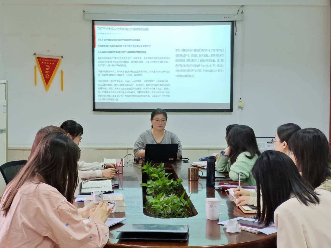 曾美玲同志分享了習(xí)近平總書(shū)記給中國(guó)農(nóng)業(yè)大學(xué)科技小院的學(xué)生回信等重要指示精神的心得,她談到作為新時(shí)代青年要實(shí)事求是、密切聯(lián)系群眾,還要與黨同心、跟黨奮斗,在工作中始終保持熾熱情感和堅(jiān)毅行動(dòng)。