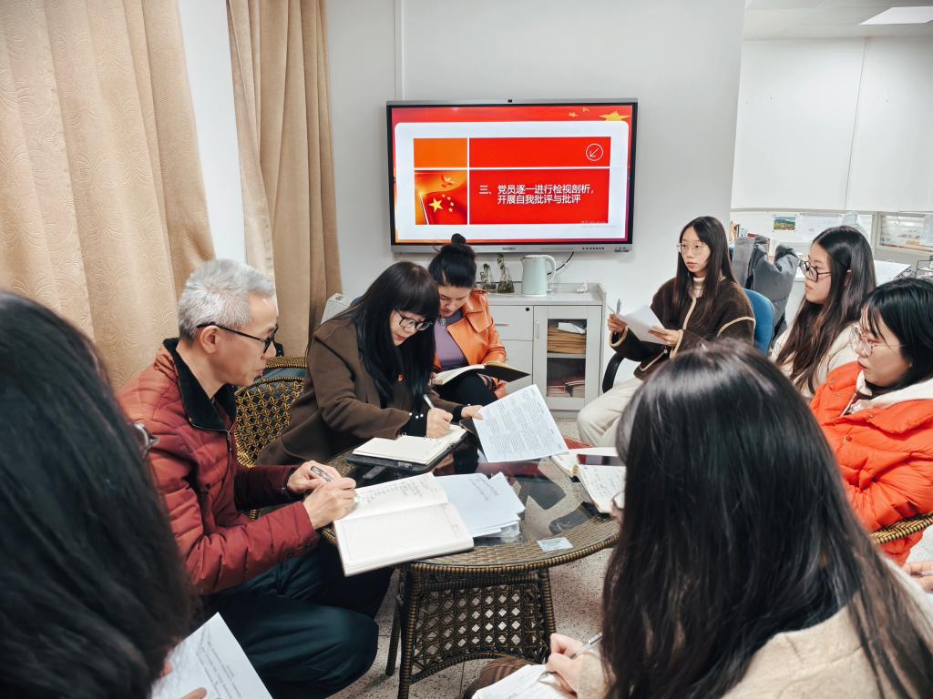 會議伊始,胡濟林作2024年黨支部工作總結(jié),他從“加強理論學(xué)習(xí),促進黨建與教學(xué)融合發(fā)展”“加強實踐創(chuàng)新,推動黨建工作走深走實”“抓牢黨建育人,培養(yǎng)擔(dān)當(dāng)民族復(fù)興大任的新人”等方面進行匯報。他同時對支部存在的規(guī)范化建設(shè)不足、特色品牌不突出、支部黨員凝聚力不強、黨建業(yè)務(wù)融合度不夠等問題進行深刻剖析,并明確提出整改思路和舉措。