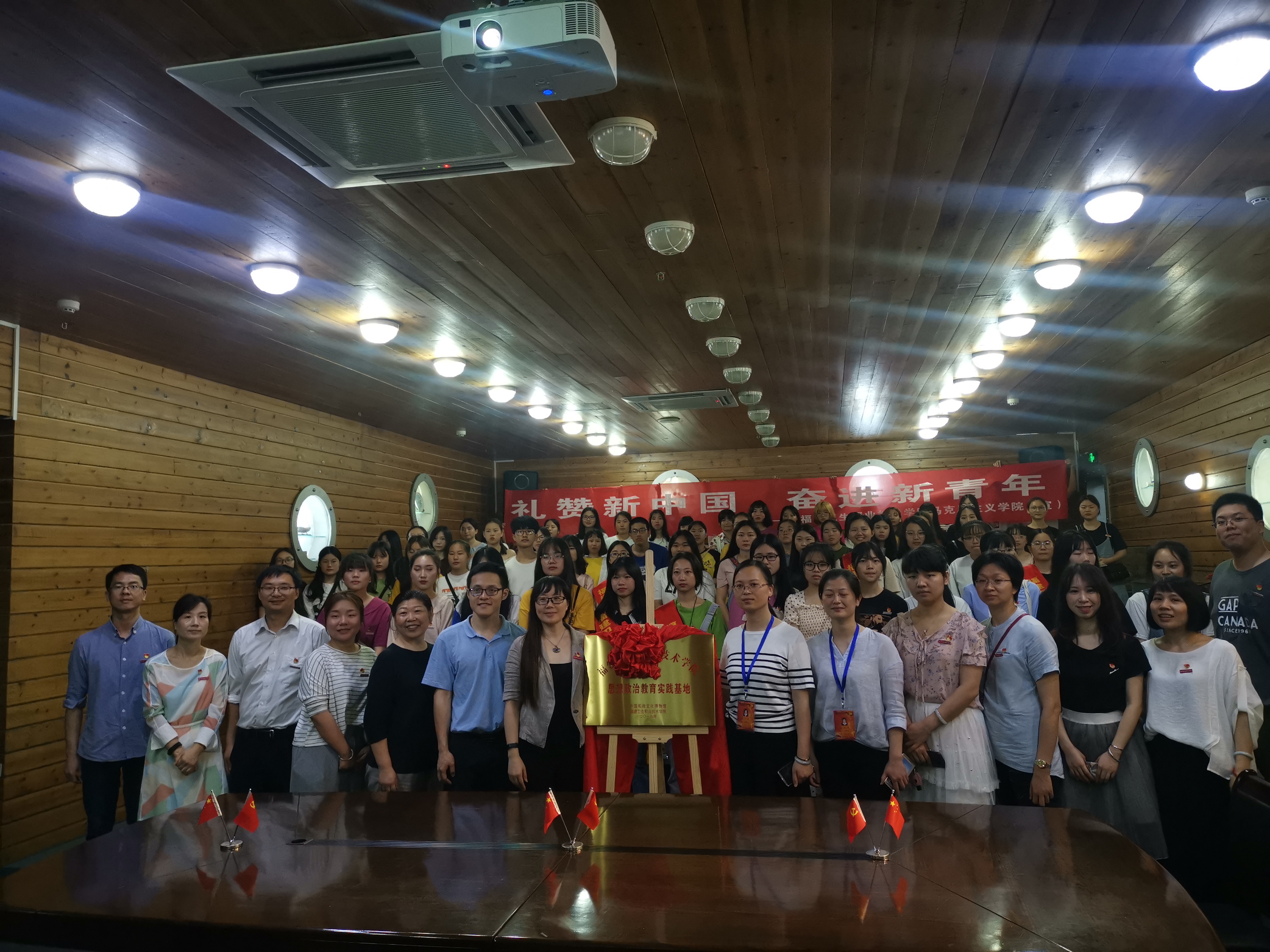 為紀(jì)念五四運(yùn)動100周年和新中國成立70周年,福建衛(wèi)生職業(yè)技術(shù)學(xué)院習(xí)近平新時代中國特色社會主義思想讀書社(簡稱讀書社),于2019年5月18日在中國船政文化博物館參加福建衛(wèi)生職業(yè)技術(shù)學(xué)院與中國船政文化博物館共建思想政治教育實(shí)踐基地簽約儀式。出席本次簽約儀式的有福建衛(wèi)生職業(yè)技術(shù)學(xué)院馬克思主義學(xué)院名譽(yù)院長魏立娜、馬克思主義學(xué)院院長熊美蘭、馬克思主義學(xué)院副院長黃曦以及馬院全體教師,中國船政文化博物館副館長王芳以及習(xí)近平新時代中國特色社會主義思想讀書社全體成員。