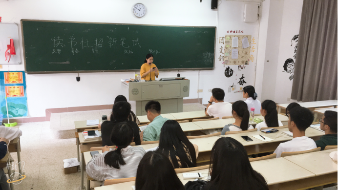 在經(jīng)過(guò)前期的社團(tuán)干事對(duì)各班級(jí)的大力宣傳和面試讀書(shū)社最終面試106人,招收新生68人。于10月24日社團(tuán)新生在教215開(kāi)展本次第一次會(huì)議。此次會(huì)議主要目的在于促進(jìn)新老生們彼此相互認(rèn)識(shí),并進(jìn)行讀書(shū)社的第一次筆試。會(huì)上,老干事們向新生做了簡(jiǎn)單的自我介紹后,新生們也向大家做了自我介紹。接著由社長(zhǎng)向新生們講解讀書(shū)的歷史和發(fā)展方向,并對(duì)他們提出一點(diǎn)小小的要求。