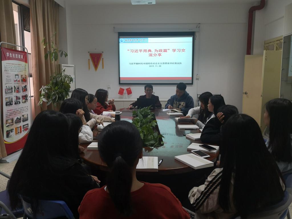 2019年11月28日,秋高氣爽,習(xí)近平新時(shí)代中國(guó)特色社會(huì)主義思想讀書(shū)社致遠(yuǎn)隊(duì)在馬克思主義學(xué)院行政樓107會(huì)議室開(kāi)展《習(xí)近平用典》“為政篇”學(xué)習(xí)交流活動(dòng)。該次活動(dòng)由致遠(yuǎn)隊(duì)指導(dǎo)老師江洪主持,致遠(yuǎn)隊(duì)全體成員參加。