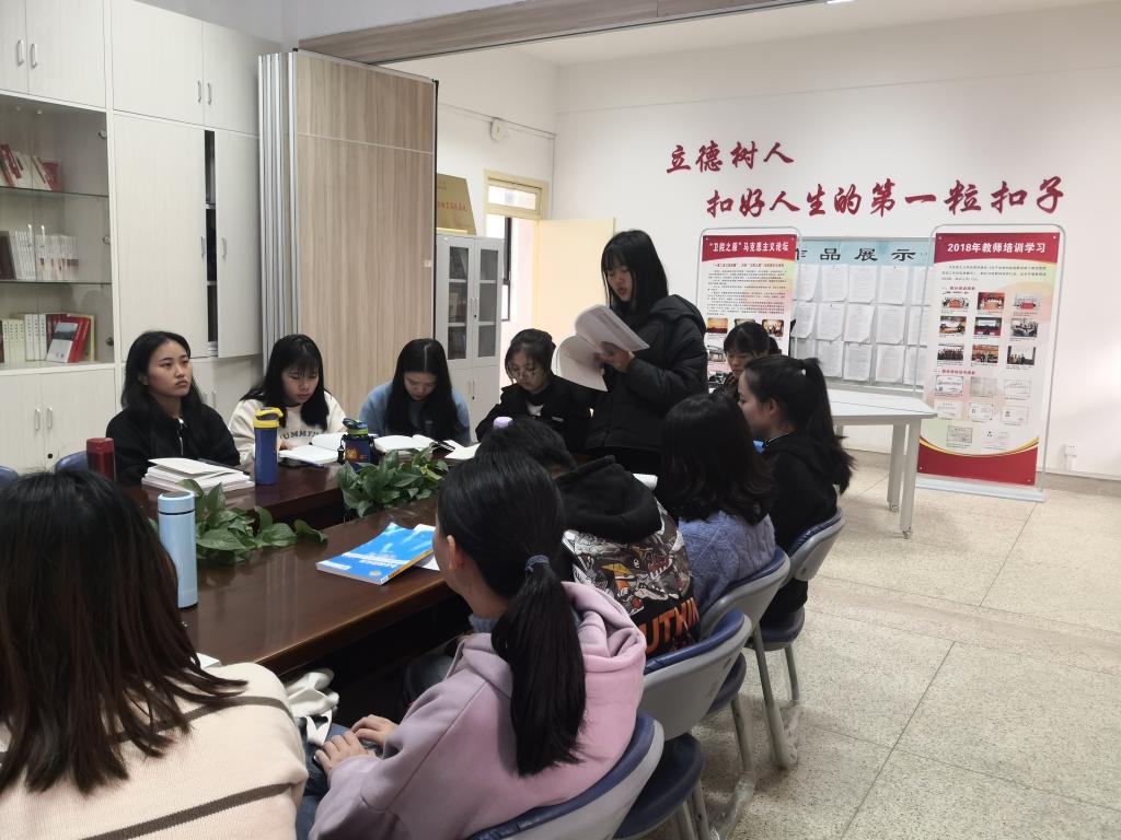 為深入學(xué)習(xí)宣傳貫徹習(xí)近平新時(shí)代中國特色社會(huì)主義思想,2019年12月24日下午,習(xí)近平新時(shí)代中國特色社會(huì)主義思想讀書社致遠(yuǎn)隊(duì)在行政樓107學(xué)習(xí)交流《習(xí)近平用典》立德篇?;顒?dòng)由指導(dǎo)老師江洪老師主持,致遠(yuǎn)隊(duì)全體成員參加了活動(dòng)。