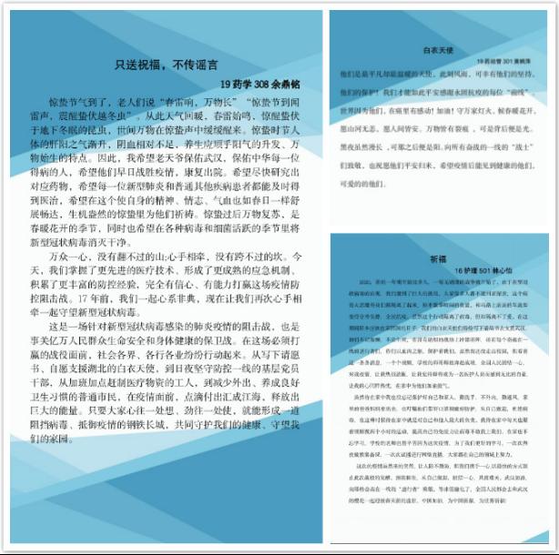 己亥末,庚子春,荊楚大疫。在這鼠年春節(jié)前夕,新型冠狀病毒感染的肺炎疫情陰霾籠罩在所有人心頭。隨著新冠病毒疫情的此起彼伏,我們的心情也隨著他的浮動緊張著。我們的緊張不僅僅是疫情的動態(tài),更是為奮力在前線奮斗的醫(yī)生、護(hù)士、戰(zhàn)士等等一線工作人員和志愿者們揪心。我校傳統(tǒng)節(jié)日研習(xí)社作為學(xué)校的社團(tuán)之一,致力于宣傳中華傳統(tǒng)節(jié)日文化,借以此次“驚蟄”這一富有萬物復(fù)蘇、冬去春來含義的傳統(tǒng)節(jié)氣,傳統(tǒng)節(jié)日研習(xí)社舉辦了“抗擊疫情·你我同行”的線上祈福活動,為盼望早日結(jié)束疫情,引導(dǎo)閩衛(wèi)院的學(xué)生們在習(xí)近平新時代中國特色社會主義思想的正確指引下,通過科學(xué)的、文明的方式,獻(xiàn)上一份寄語、一份祝福、一份期盼,為打贏這場疫情防控戰(zhàn)貢獻(xiàn)一份青春力量。