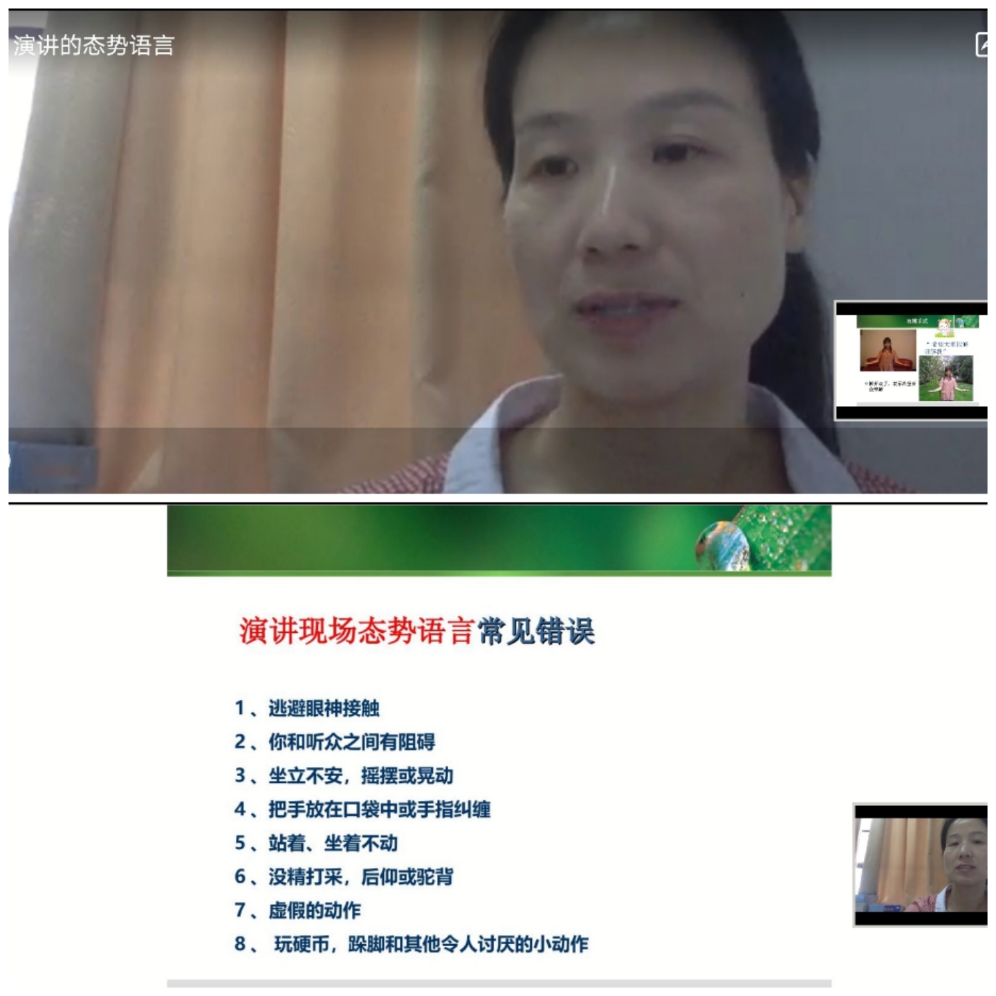 在活動之前,來朋珍老師在“學(xué)習(xí)通”平臺上生動形象的給同學(xué)們講解了主題為“演講的姿態(tài)語言”的指導(dǎo)課,給接下來的繞口令練習(xí)課舒緩了同學(xué)們“矜持”的情緒。