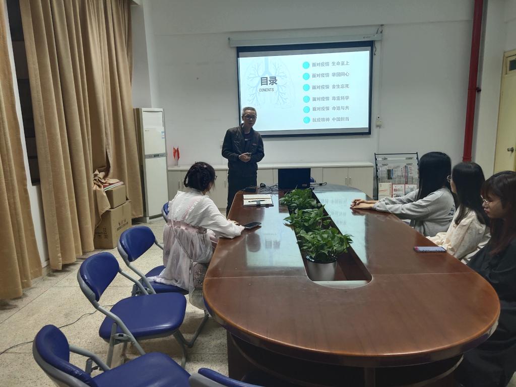 2020年10月25日傍晚,習(xí)近平新時(shí)代中國(guó)特色社會(huì)主義思想讀書社宣講團(tuán)在胡濟(jì)林老師指導(dǎo)下,在行政樓107馬克思主義學(xué)院會(huì)議室舉行“弘揚(yáng)偉大抗疫精神”內(nèi)部宣講。同學(xué)們前期分成兩個(gè)宣講小組,在完成宣講稿件撰寫、做PPT的基礎(chǔ)上,選派林晨、曹倩兩位同學(xué)宣講,他們演講的題目分別是《弘揚(yáng)抗疫精神 踐行責(zé)任擔(dān)當(dāng)》和《學(xué)習(xí)和弘揚(yáng)抗疫精神》。